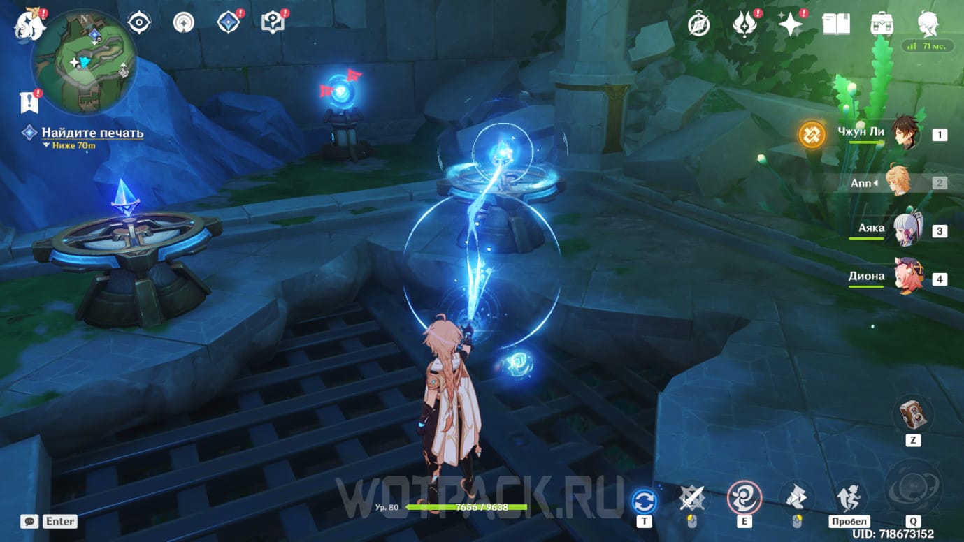 Пройдите к центру храма и изучите устройство, собирающее Потоки энергии. Далее необходимо активировать два механизма поблизости, чтобы направить от них голубые каналы к главному аппарату.