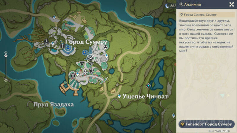 Алхимические верстаки расположены по всему Тейвату, в каждом главном городе регионов, а также на Драконьем хребте и в Разломе (местонахождение меняется в зависимости от прохождения сюжета территории).