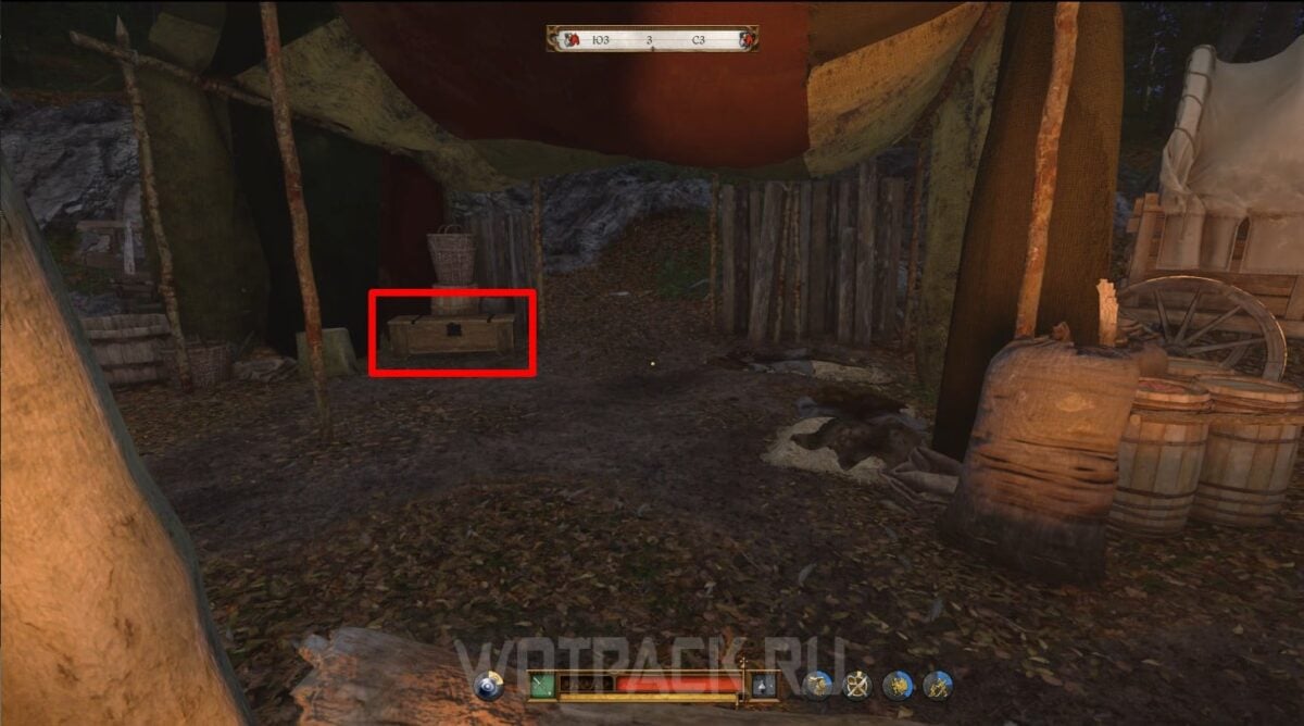 Если решили не убивать Матуша сейчас или не покупать книгу, остается другой вариант, позволяющий вернуть как украденные деньги, так и предмет рихтаржа. От дороги, где произошла засада, двигайтесь в лес на юг. Там найдете опорный пункт разбойников.