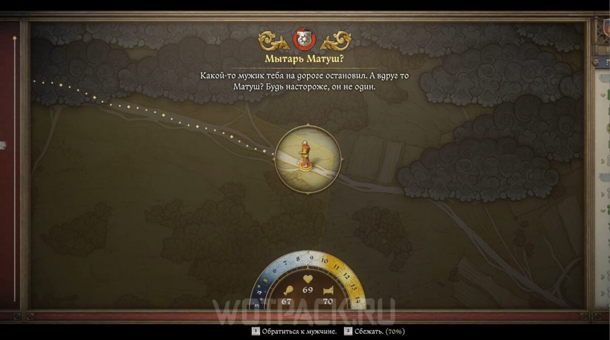 Поймать разбойника Матуша по кличке Мытарь можно у леса, расположенного между Мышковицами и Сухдолом. Воспользуйтесь быстрым перемещением, в ходе которого увидите событие «Мытарь Матуш?». Выбирайте опцию «Обратиться к мужчине».