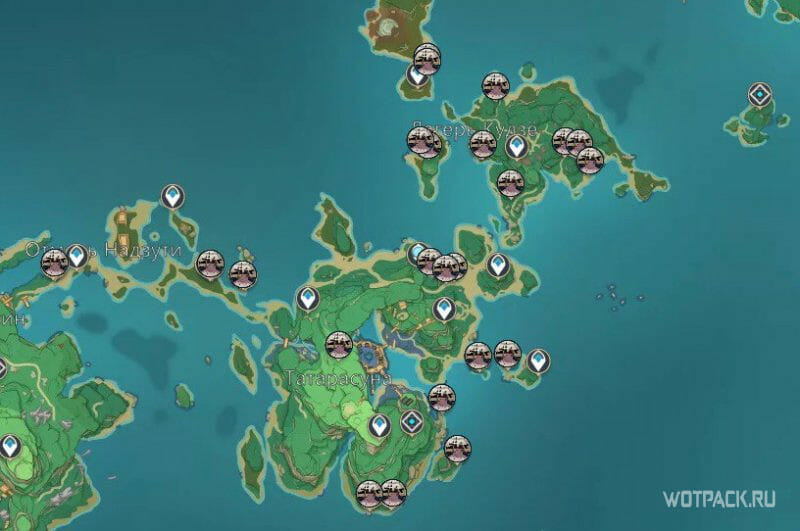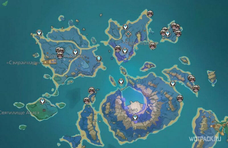 Телепортируйтесь на север Пика Амакумо и спланируйте на западный островок. Южнее первой группы расположилась вторая.