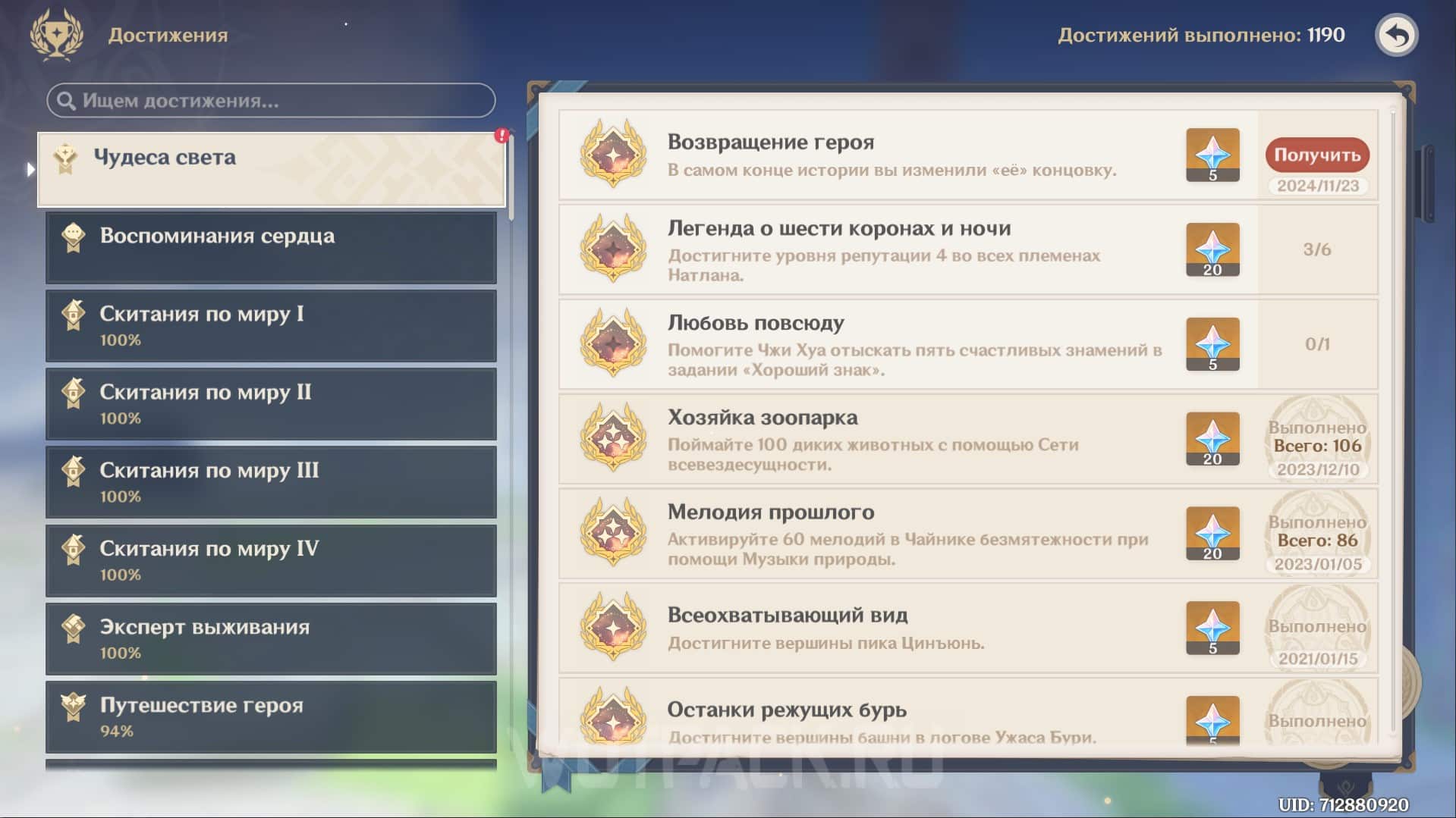 Получив третью и последнюю Запись безымянного искателя приключений, выполните условие «В самом конце истории вы изменили её концовку» и заработаете ачивку Возвращение героя в Genshin Impact, относящуюся к разделу «Чудеса света» и дающую 5 камней истока.