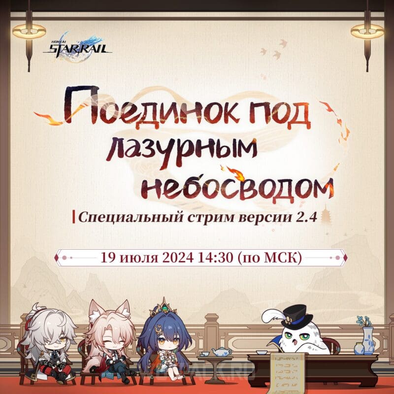Официальная трансляция разработчиков по HSR 2.4 состоится 19 июля 2024 года на стриминговых площадках Twitch и YouTube. В прямом эфире расскажут обо всем, что игроков ожидает в новой версии: персонажи, ивенты, миссии и локации. Кроме того, в процессе дадут три подарочных промокода, приносящих в сумме 300 звездных нефритов.