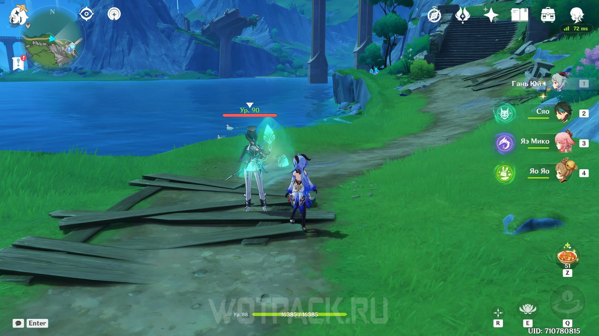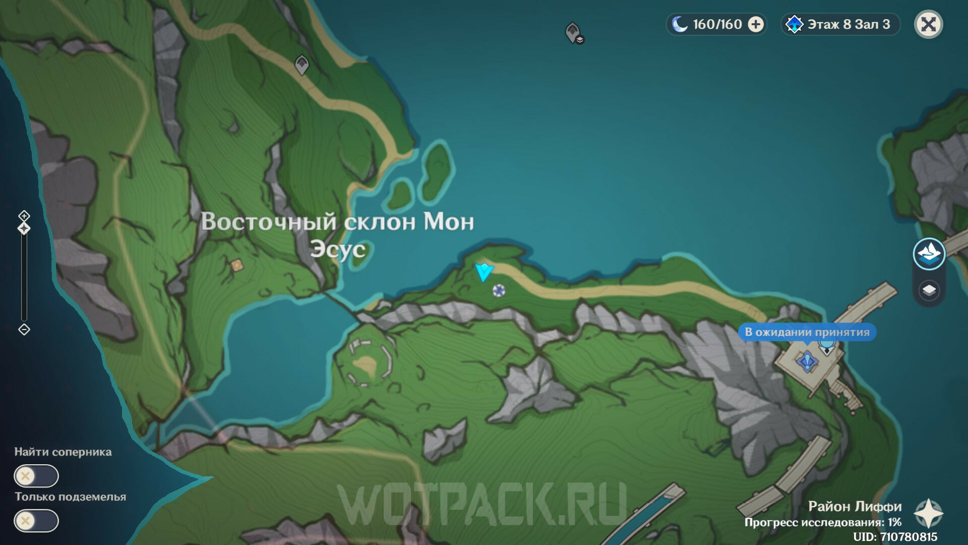 Продолжайте перемещаться вдоль тропы и бегите в сторону восточного склона Мон Эсус. У берега найдется разбитый Фатуи лагерь, в котором среди противников состоит один оперативник.