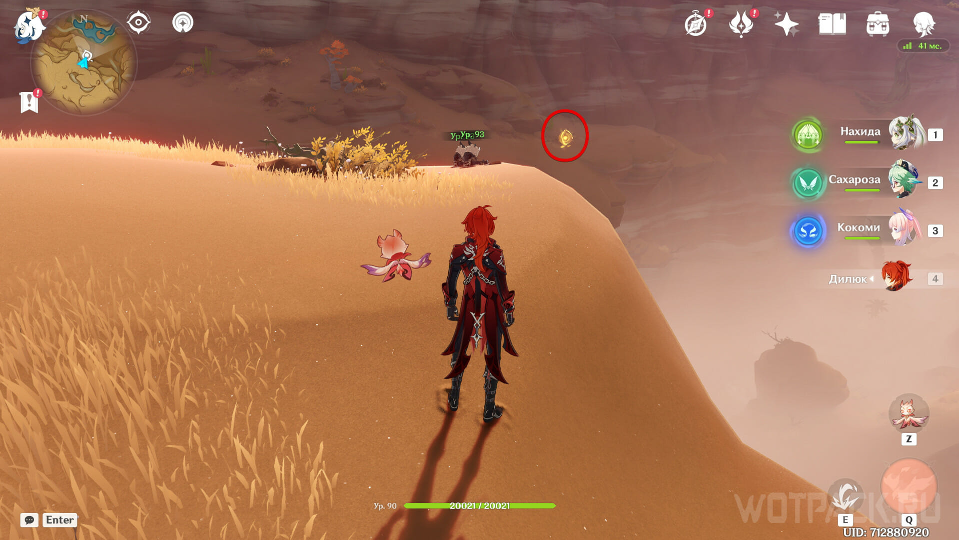 Планируйте от статуи Архонта в Гавирех Ладжавард к Пролому Туниги. Оперенье окружила группа хиличурлов.