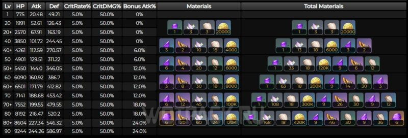 | Уровень | Базовое HP | Базовая атака | Базовая защита | Сила атаки |
