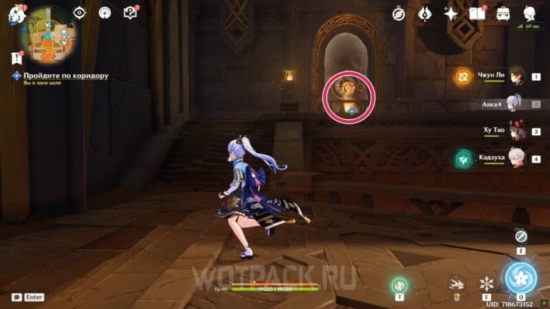 На этом этапе увидите надпись «Пока невозможно пройти. Попробуйте сменить ракурс, чтобы продолжить испытание», которая означает, что пора переключиться на персонажа. Для этого нажмите на соответствующую кнопку в правом нижнем углу или на клавишу «Т». Если прервались от выполнения задания и нужно, наоборот, изменить облик с персонажа на завриана, то отыщите круг и сделайте те же действия в нём.