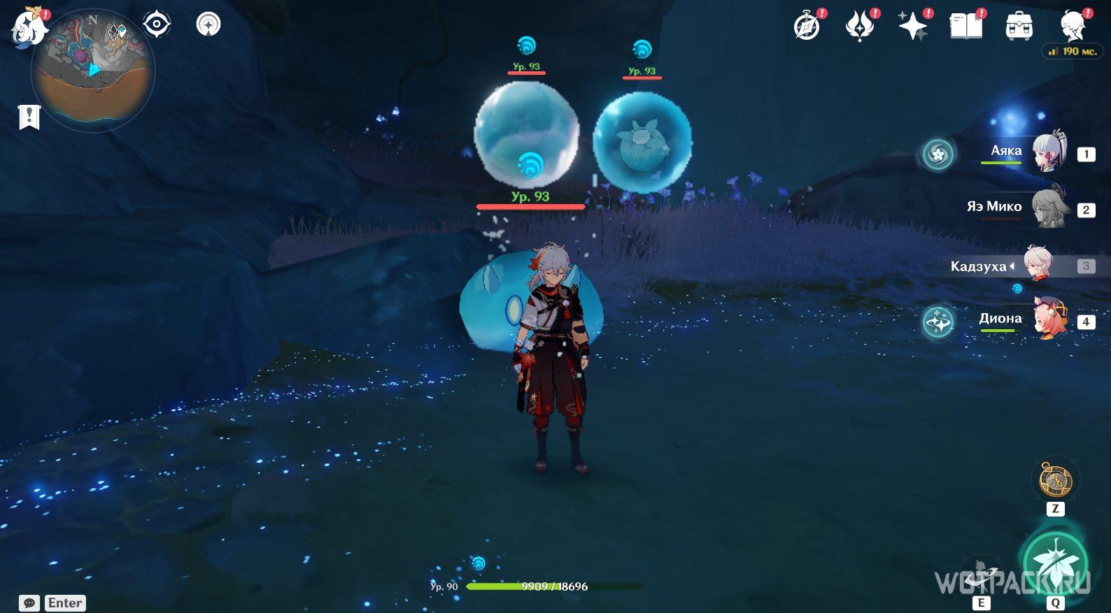- Парящий Гидро плесенник. Этот враг способен создавать вокруг себя пузырь для собственной защиты, а также запускать его в игрока, нанося Гидро урон. Он не является элементальным существом, то есть не заряжен элементально по умолчанию (как, например, слайм).