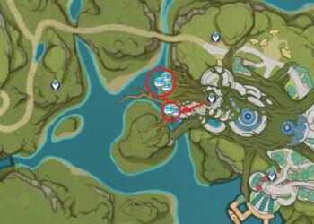 У Города Сумеру есть 2 небольших точки, расположенных на западе локации, под корнями дерева.