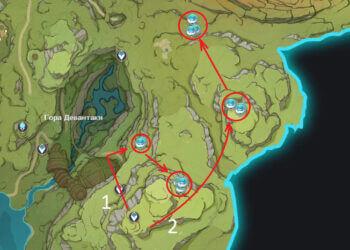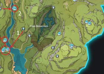 К западу от Горы Девантаки есть также 2 маршрута. От Статуи Архонта отправляйтесь на другой берег, в сторону Порт-Ормоса. Фармите плесенников и двигайтесь на север. После этого переместитесь к южному телепорту у Деревни Вимара и переберитесь на восток: на том берегу есть еще враги.