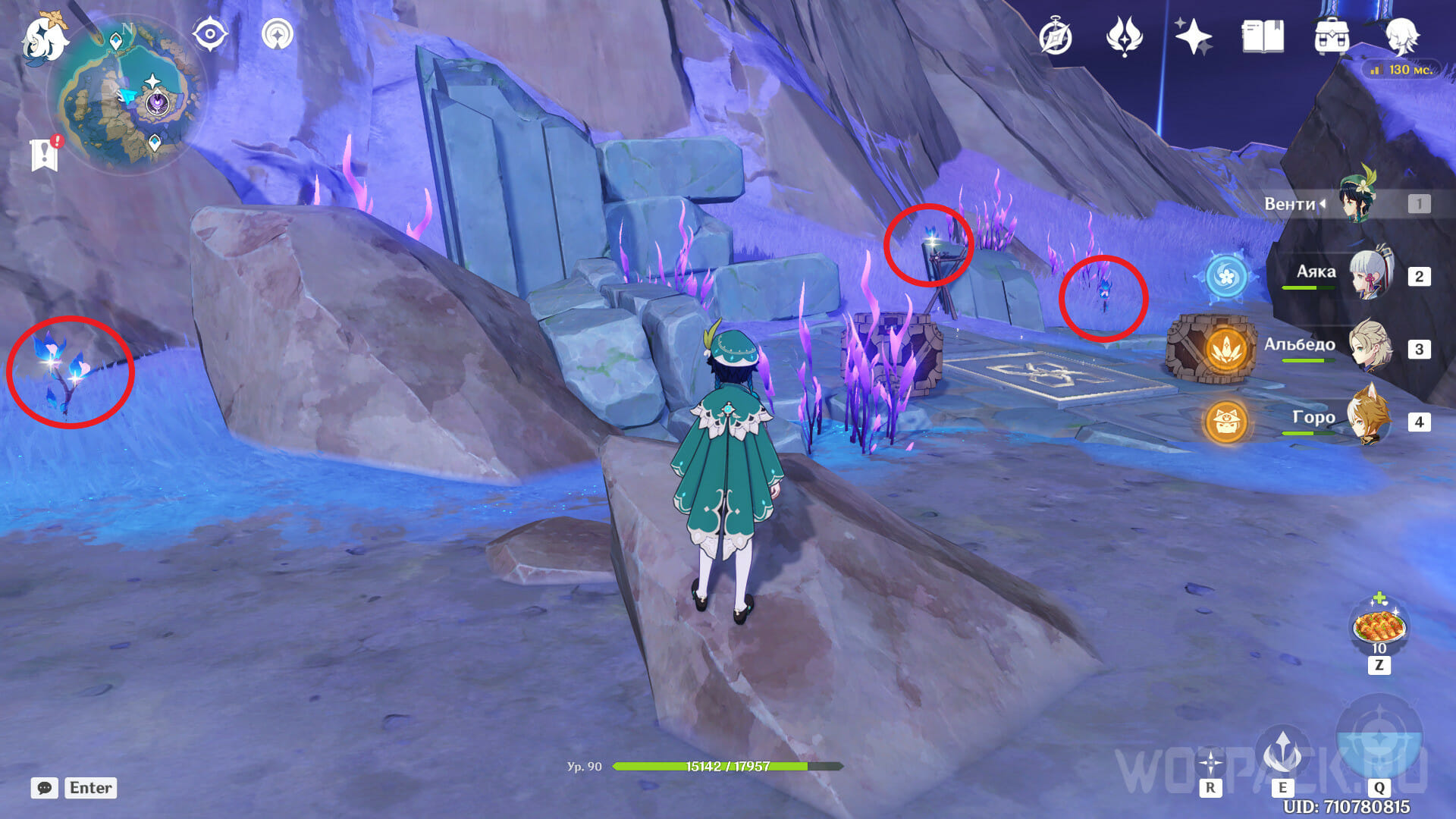 - Немного отбегите к востоку и у подножия скалы с телепортом найдете еще цветок.