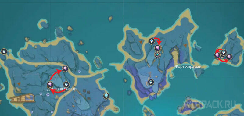 В окрестностях деревни Косэки и Форта Хирауми есть всего 9 точек сбора, где можно найти плод облачной травы: