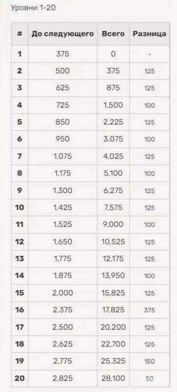 Количество требуемых очков растет с каждым уровнем. С 1 по 55 уровень можно прокачаться условно быстро, так как цифры не слишком большие, но после 55 ранга могут уходить месяцы времени на получение каждого уровня. Ниже показана таблица опыта, который требуется для получения каждого ранга.