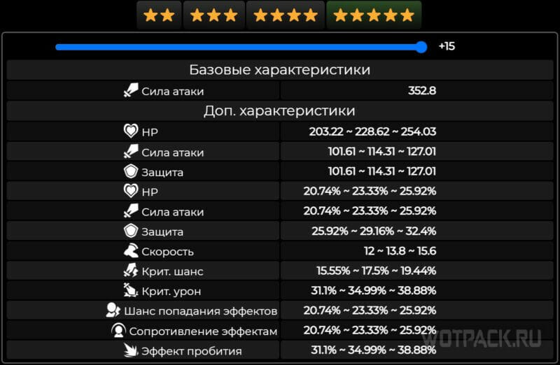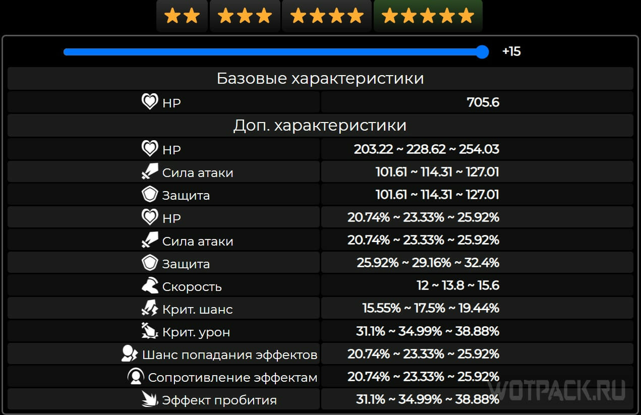 - 5⭐ лучшие из возможных по характеристикам, попадаются с III по VI испытание.