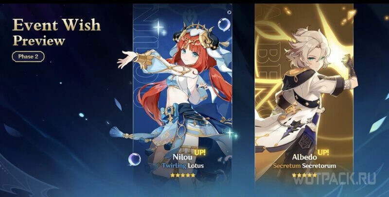 В первой половине пройдут молитвы Сайно и Венти с эпическими Кандакией, Саю и Куки Синобу, а во второй Нилу и реран Альбедо.