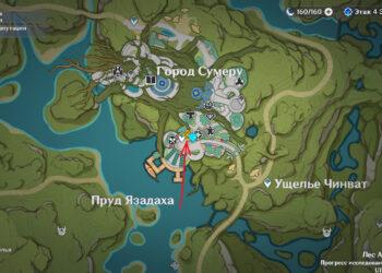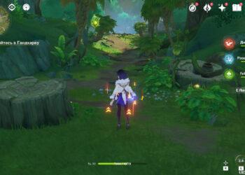 Покиньте дом деревенского старосты и направляйтесь к месту, где впервые встретили Сайно. Спуститесь вниз и перейдите через мост к Статуе Архонта. Там обнаружите Кандакию, которая уже долгое время сражается с щенками Разрыва.