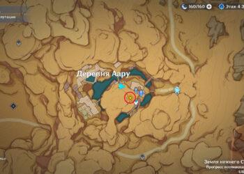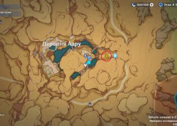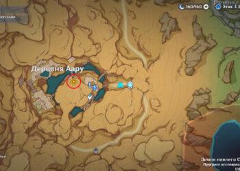 Пройдите через ворота в Караван-рибате, которые ведут в пустыню. Двигайтесь на юго-запад, к деревне Аару, где расположена Статуя Архонта. Пройдите по пустошам, пока не дойдете до входа в поселение.
