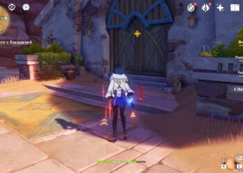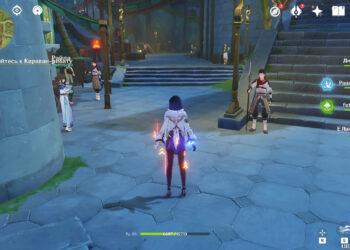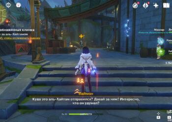 Последуйте совету Тигнари и направляйтесь к Караван-рибату, чтобы оттуда добраться до пустыни. Войдите на территорию локации и у лестницы сверните налево: сразу же начнется кат-сцена, в которой Путешественник встретит аль-Хайтама.