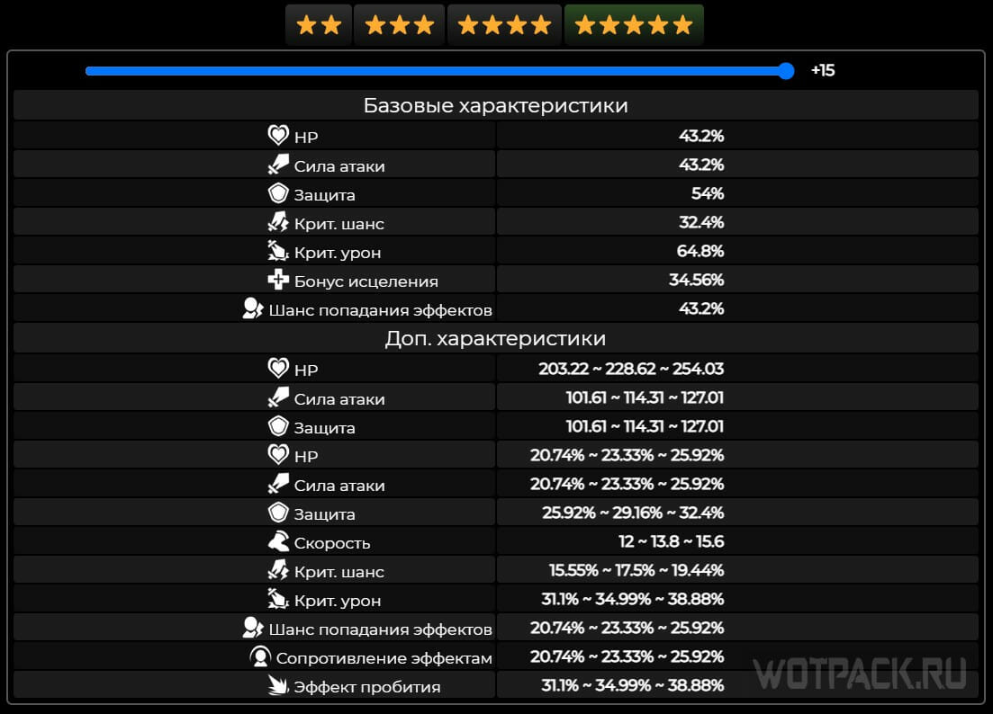 Базовые характеристики на голове и руках постоянны и будут идентичны всегда. Тело и ноги же имеют случайные показатели. Дополнительные характеристики также определяются рандомным образом. Далее рассмотрим все возможные показатели у 5 ⭐ реликвий, поскольку именно они имеют наибольший потенциал: