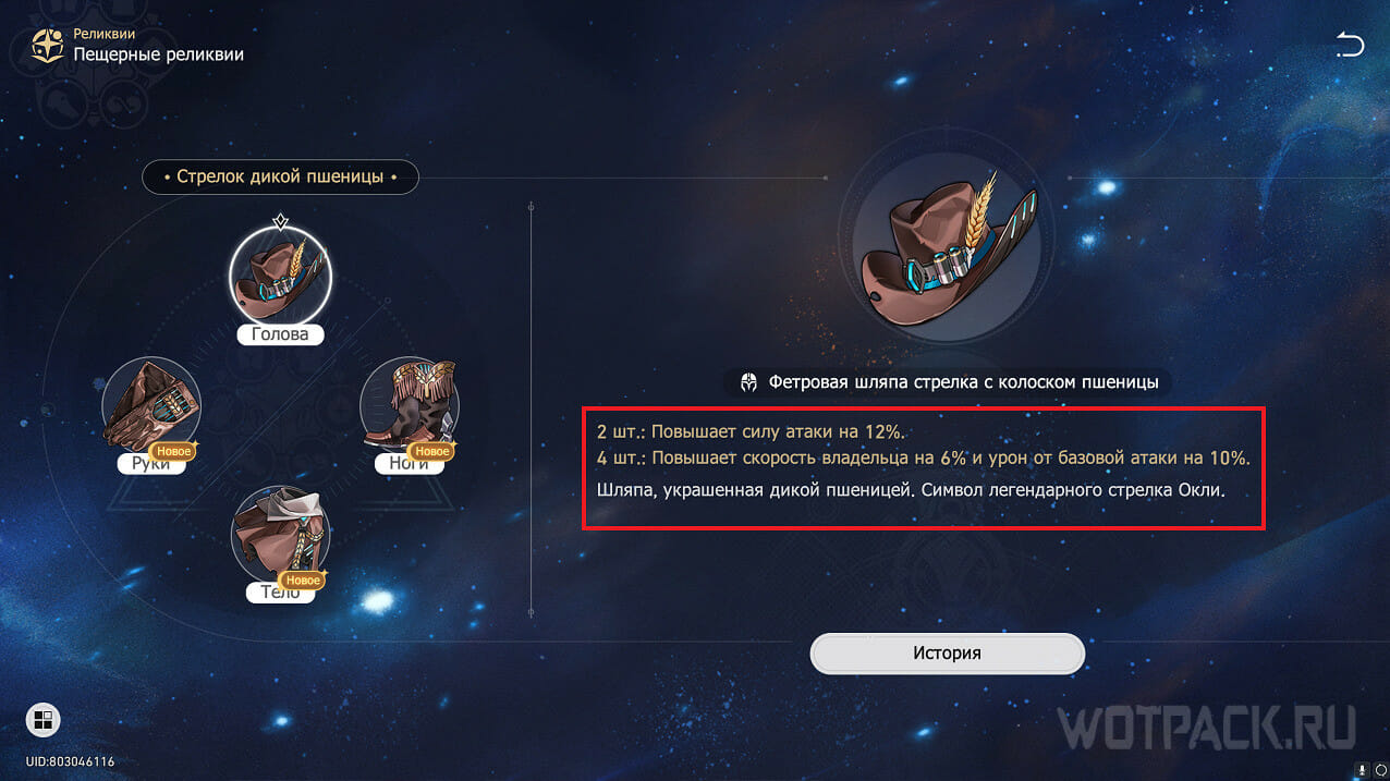 Стрелок дикой пшеницы в Honkai: Star Rail – набор реликвий, который является крайне универсальным и актуален на всех стадиях игры. Он повышает силу атаки и скорость персонажа, из-за чего подходит как дамагерам, так и персонажам поддержки. За счет своих показателей фулл сет можно поставить на большое количество героев или эффективно сочетать с другими наборами.