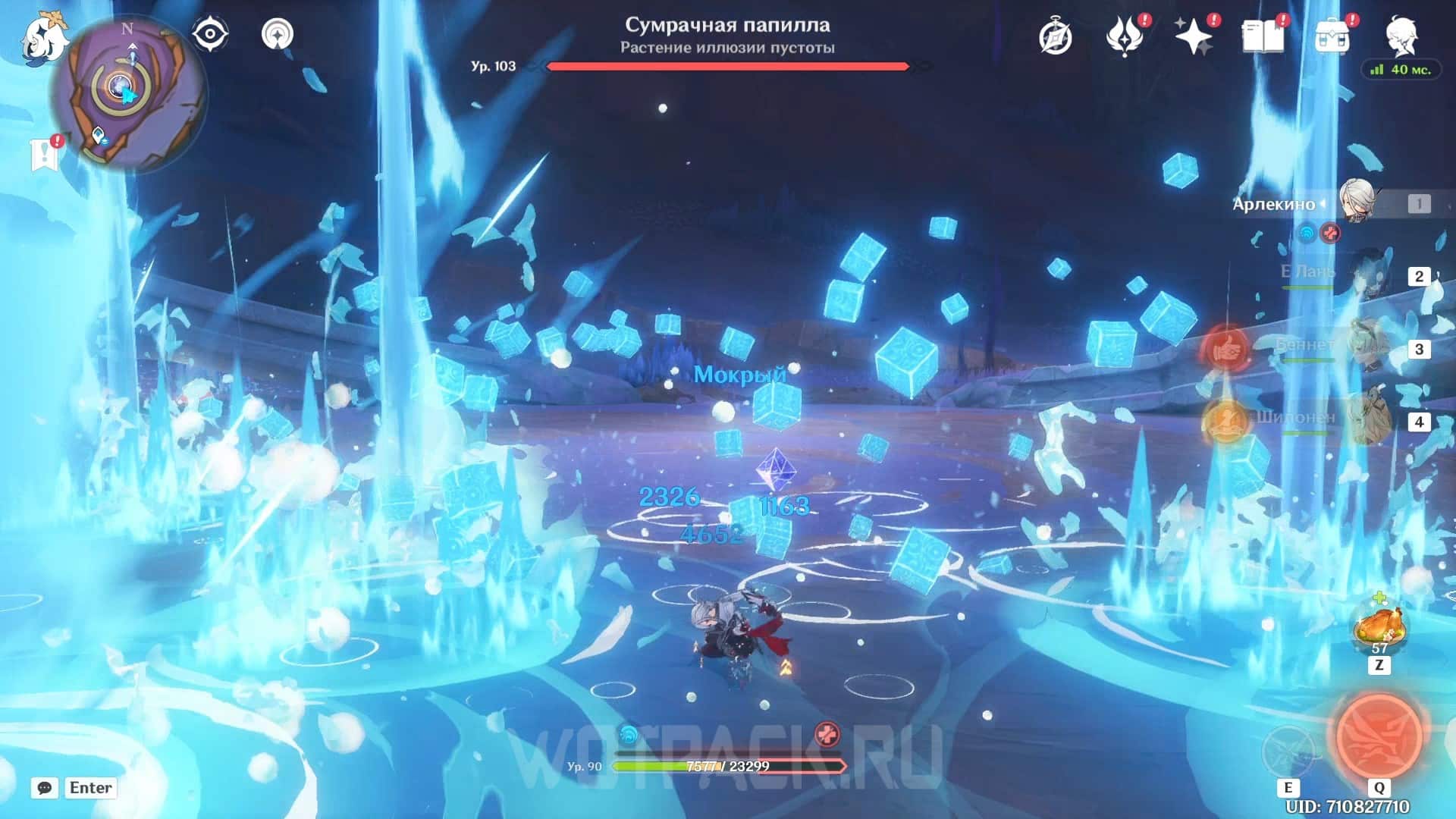 Тарталья | Гидро | Лук | Играет преимущественно через реакции, поэтому сможет быстро уничтожать щит Сумрачной папиллы с помощью большого количества элементальных ударов. |