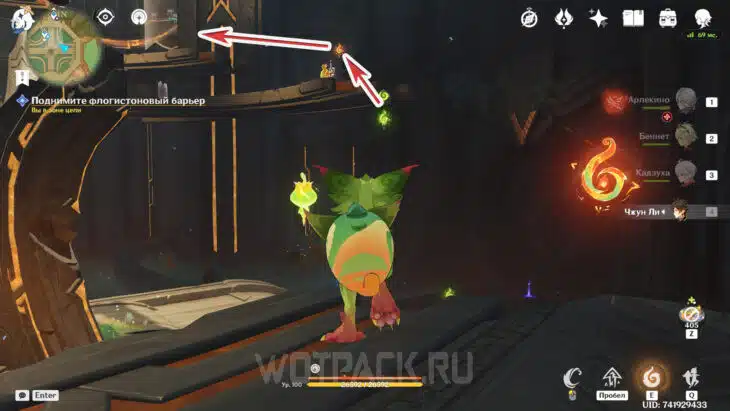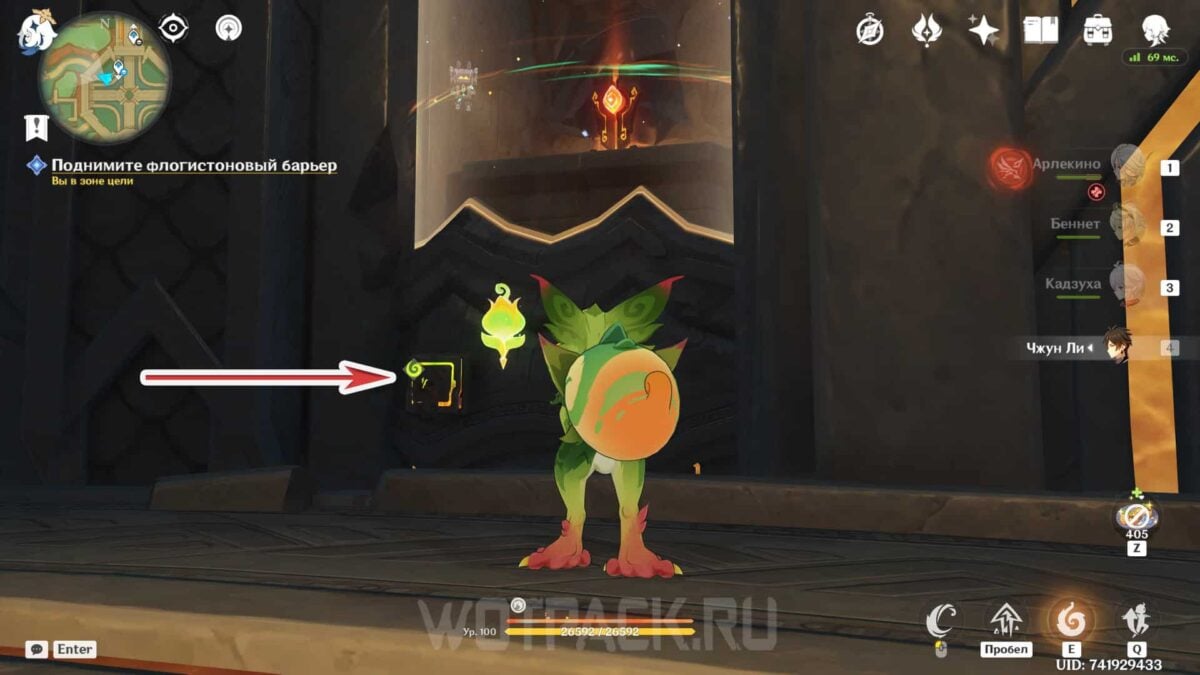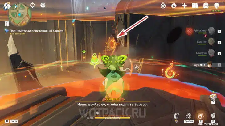 Действие активирует оборонительную функцию руин и включит внутреннюю защиту в виде флогистонового барьера. Для очищения разрешения, расположенного в самой высокой точке зала, потребуется поднять барьер еще три раза.