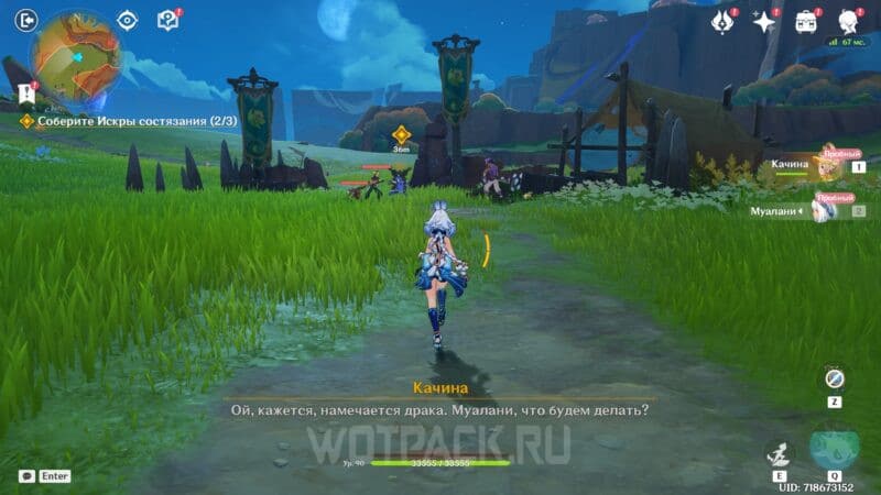 Придерживайтесь главной дороги и следуйте на юго-запад к месту проведения состязания. Сделайте небольшой привал у точки телепортации и узнайте от Качины, что местный Архонт отличается от других божеств.