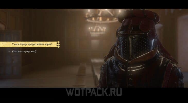 Для начала задания «Тяжкий долг» потребуется запустить прохождение другого побочного квеста — «Пир для нищих». После этого подойдите к любому стражнику в округе и выберите реплику «У меня есть сведения о воровской шайке». Слуга закона в любом случае отправит Индржиха к рихтаржу, поэтому диалог с солдатами можно пропустить и отправиться сразу к главному правоохранителю.