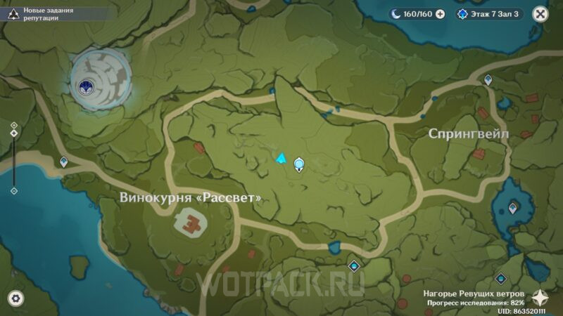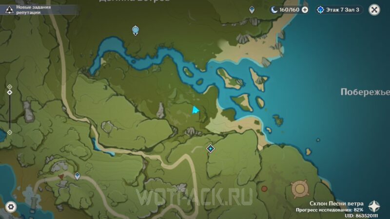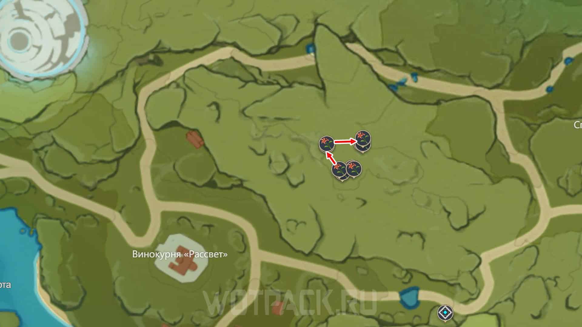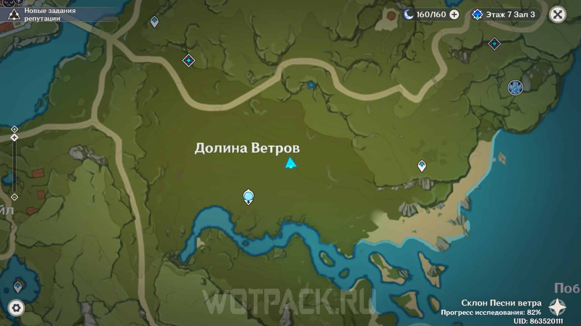Начинайте фарм от Статуи Анемо Архонта в долине, откуда пройдите на северо-запад и соберите 2 ветряных астры на возвышенности.