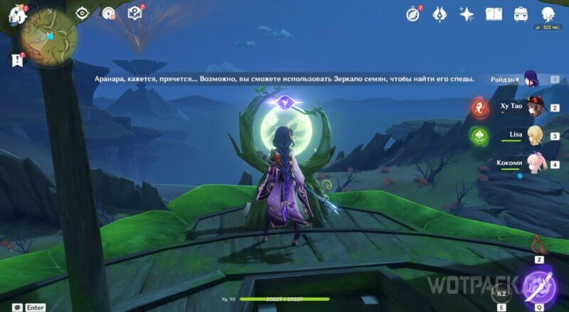 К югу от точки телепортации расположен домик, возле которого 4 Дендро монумента. Активируйте их, чтобы разрушить барьер, преграждающий путь в башню Зеркала семян.