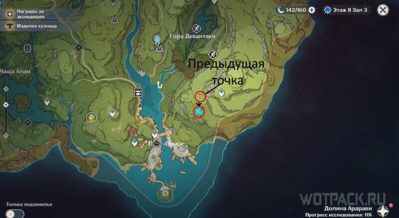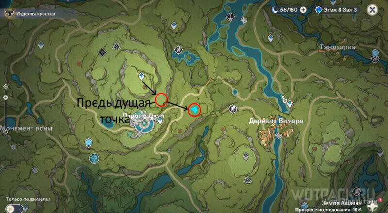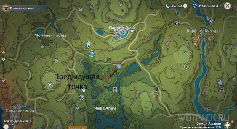 На карте указано два маршрута, первый от предыдущей точки и второй от ближайшей телепортации. Выбирайте наиболее удобный вариант.