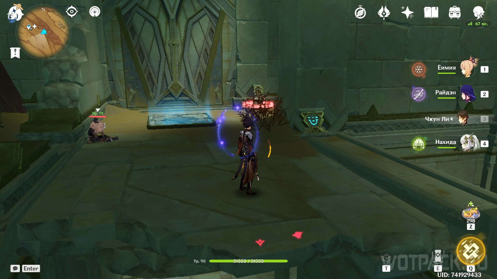 От точки телепортации в Храме Хемену, отмеченной на скриншоте, пройдите к первому зданию на пути, и воспользуйтесь подъемником, который приведет к верхним этажам руин.