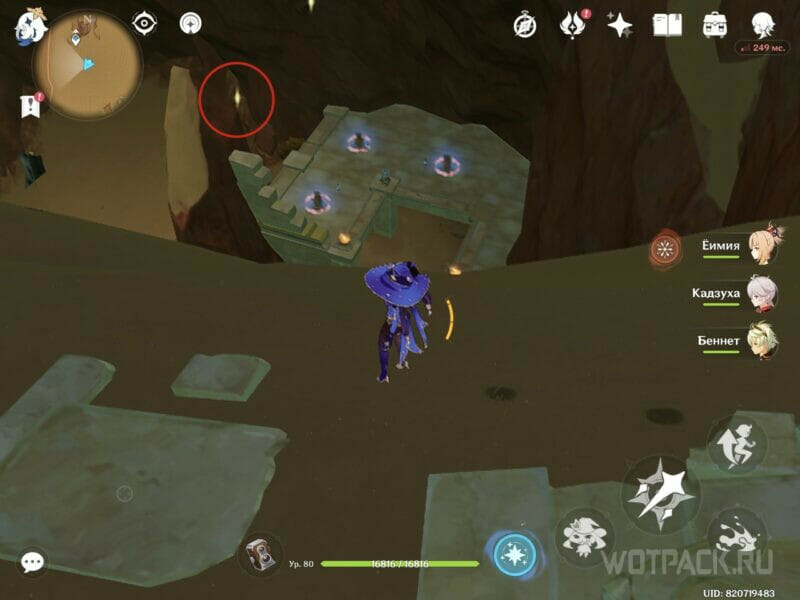В низине местности, у озера, где водится Крио маг Бездны, увидите один элементальный монумент, за которым расположена груда камней. Разрушьте преграду, чтобы забрать ключ-камень.