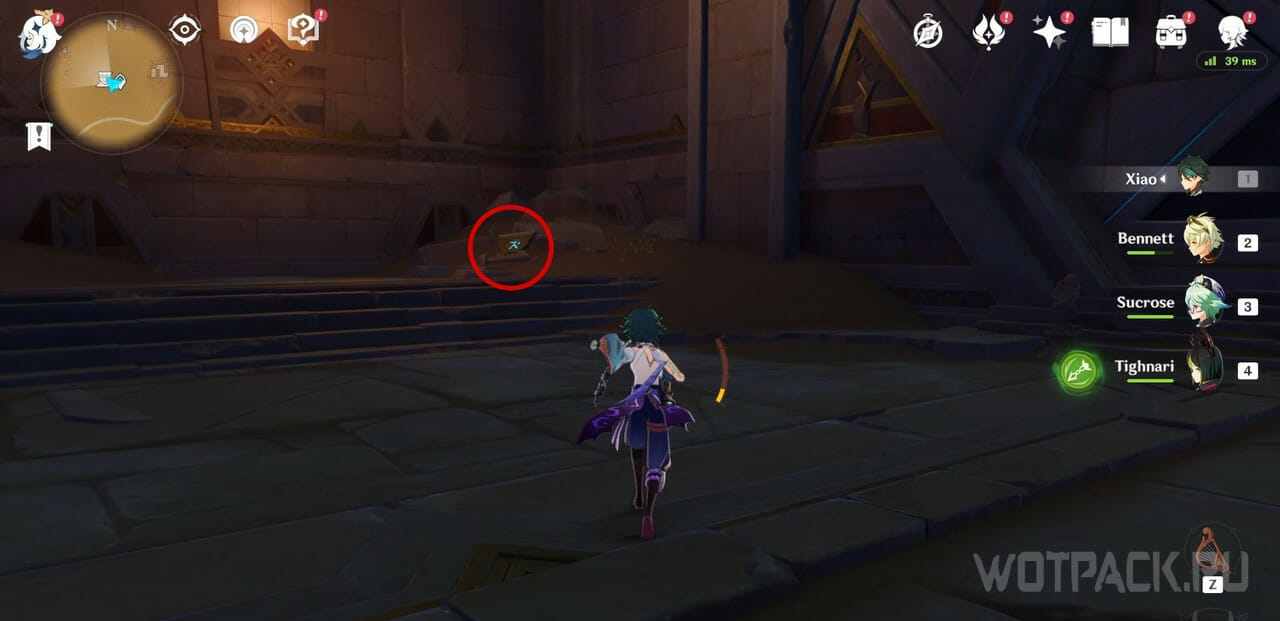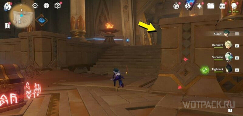 От 5 Скрижали бегите прямо по коридору, и поднимите ее у Обелиска. Вставьте все собранные предметы в него, чтобы получить сундук.