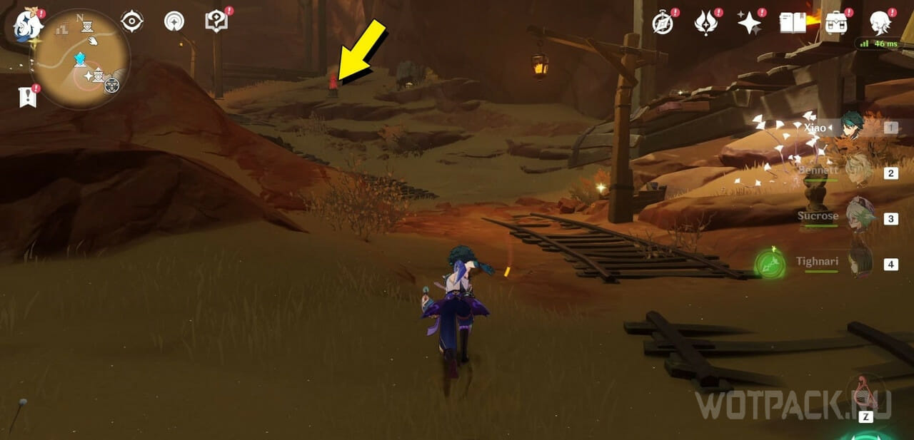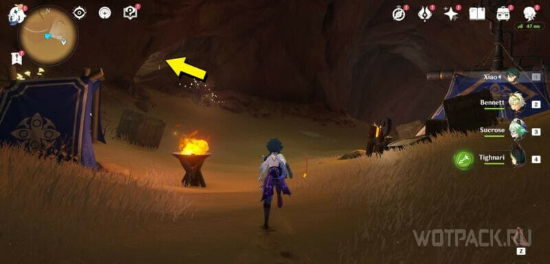 Под разрушаемыми ящиками в лагере хиличурлов у дороги можно найти ключ-камень.