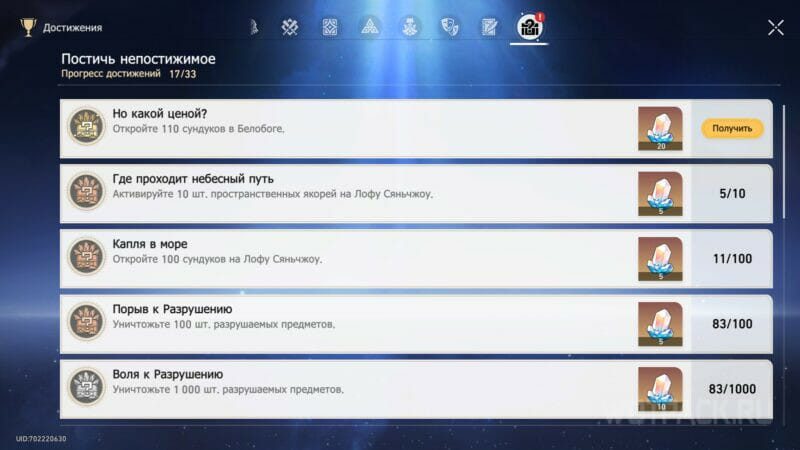 В ходе сбора можно заработать ачивку из раздела «Постичь непостижимое» — «Но какой ценой?». Она дается за открытие 110 сундуков в районах города Белобога на Ярило-VI и приносит 20 звездных нефритов.