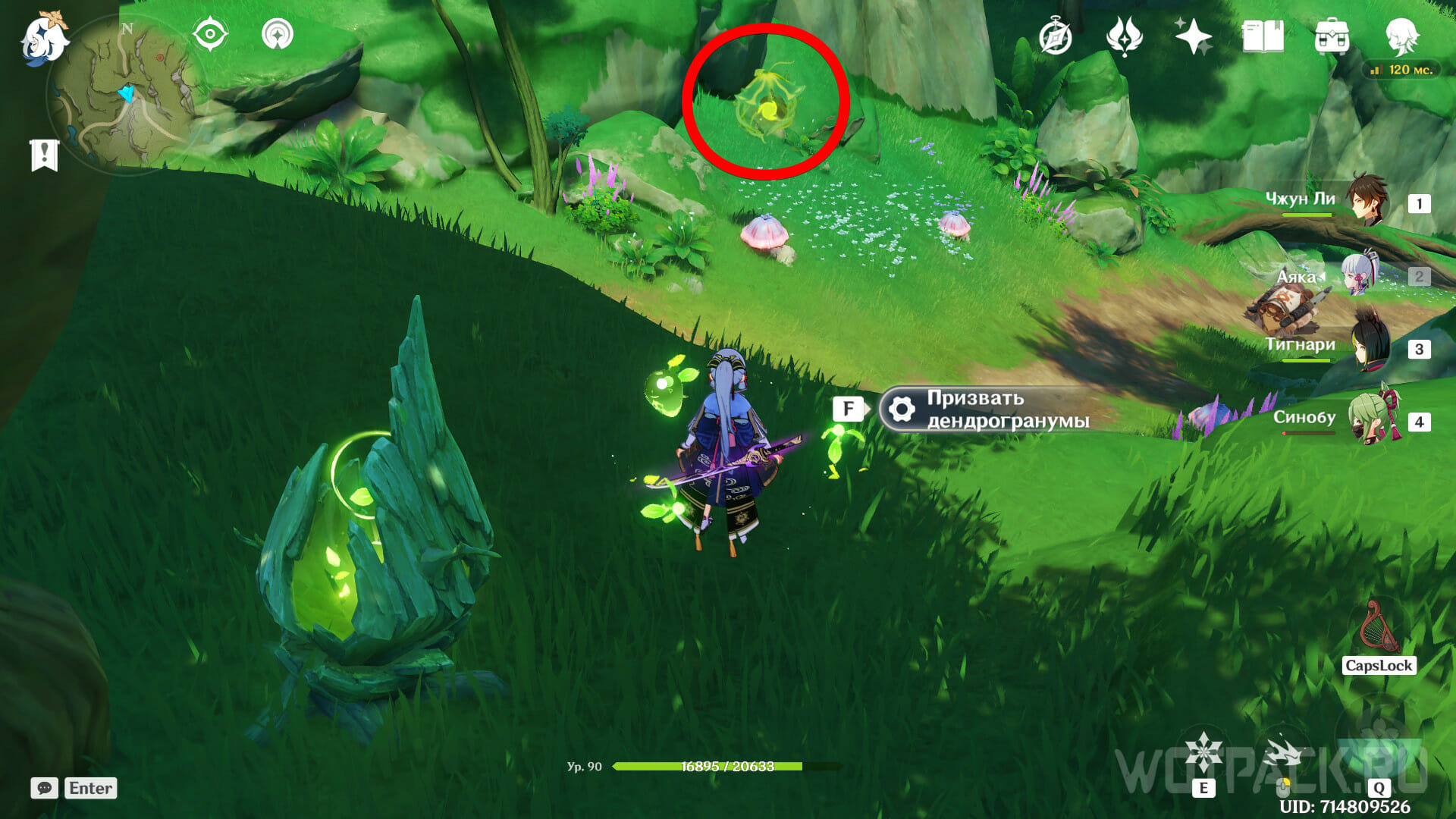 Вокруг Дендро барьера растут 4 цветка, после взаимодействия с которыми появятся 4 попрыгуньи. Убейте их, чтобы открыть доступ к дендрокулу.