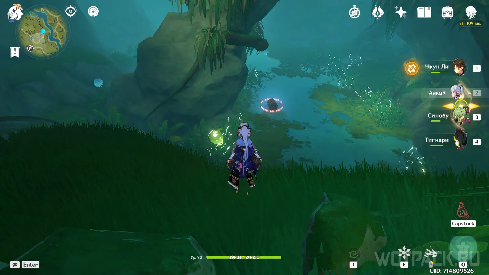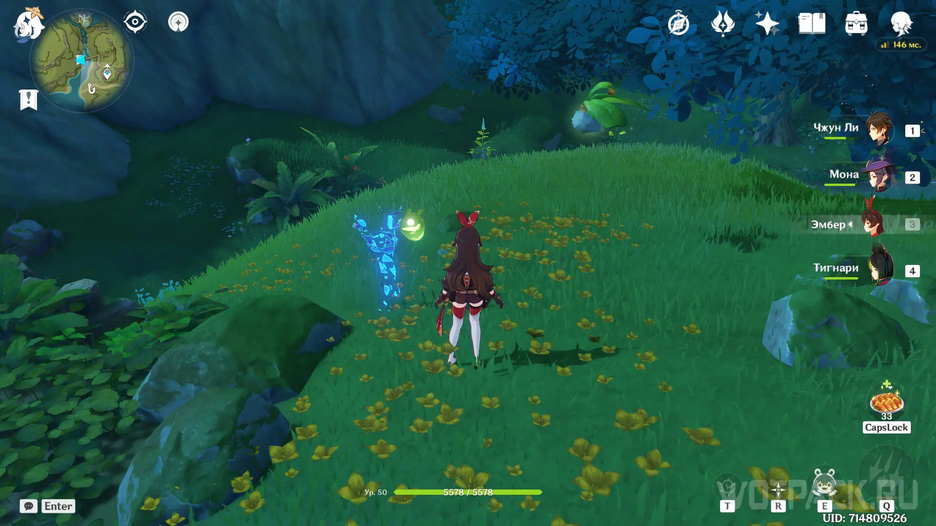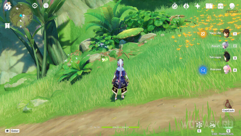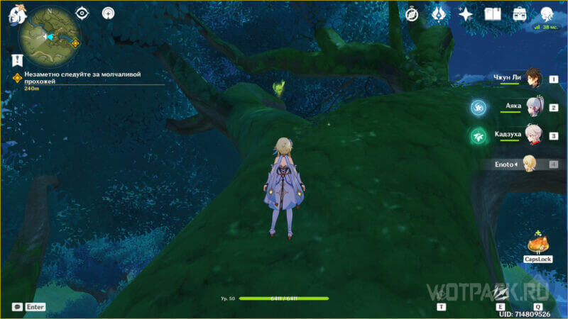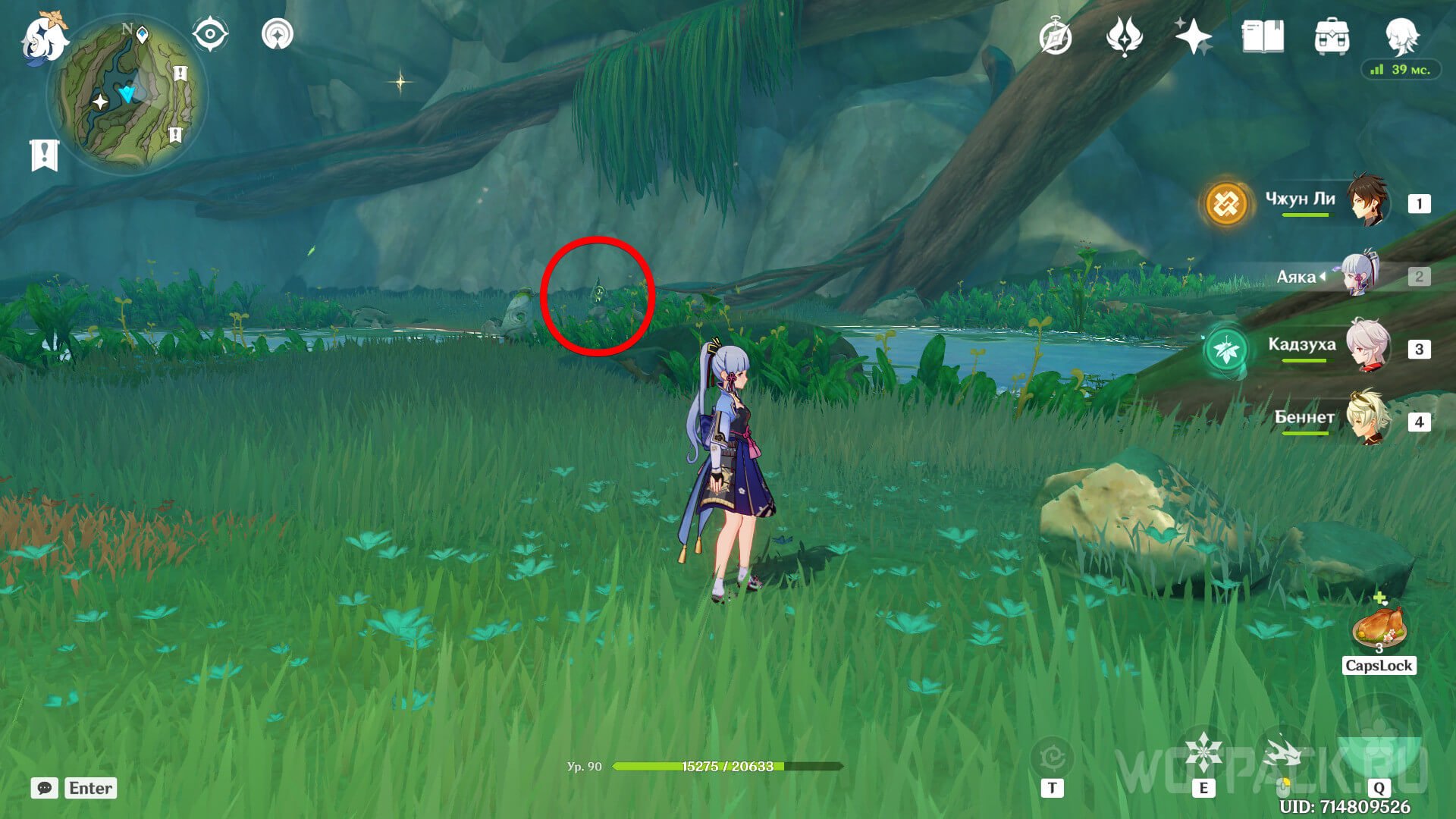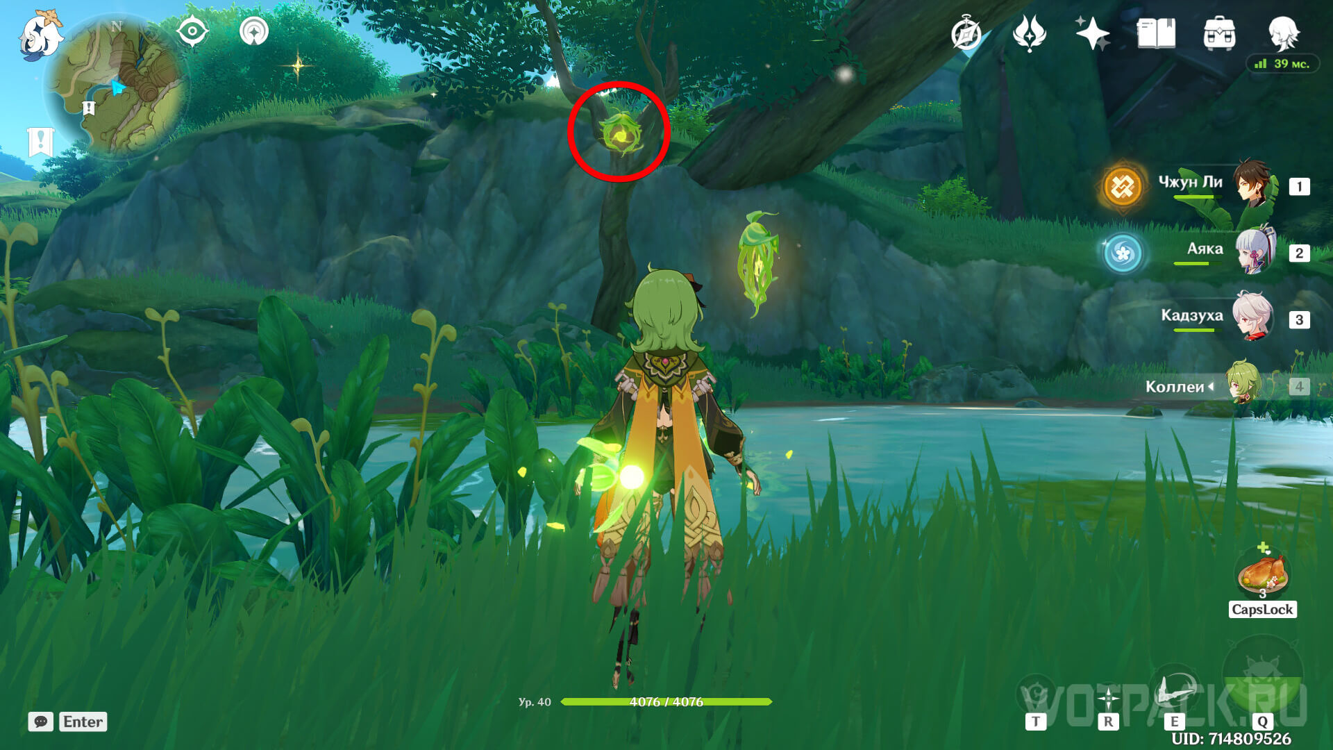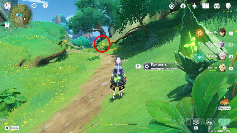 Поднимите Дендро корягу любой Дендро атакой и заберите из-под нее 10000 моры. Хиличурла рядом можно не трогать.