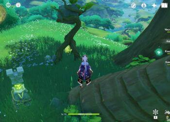 Спуститесь на дно ущелья и активируйте два Дендро монумента. Сделать это можно с помощью дендрогранумов и заряженных атак или навыков Дендро персонажей. Награда: обычный сундук.