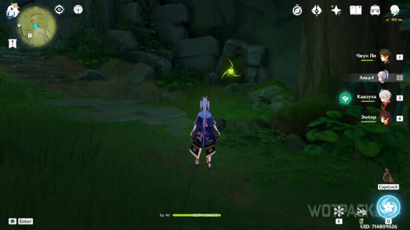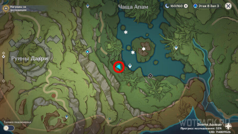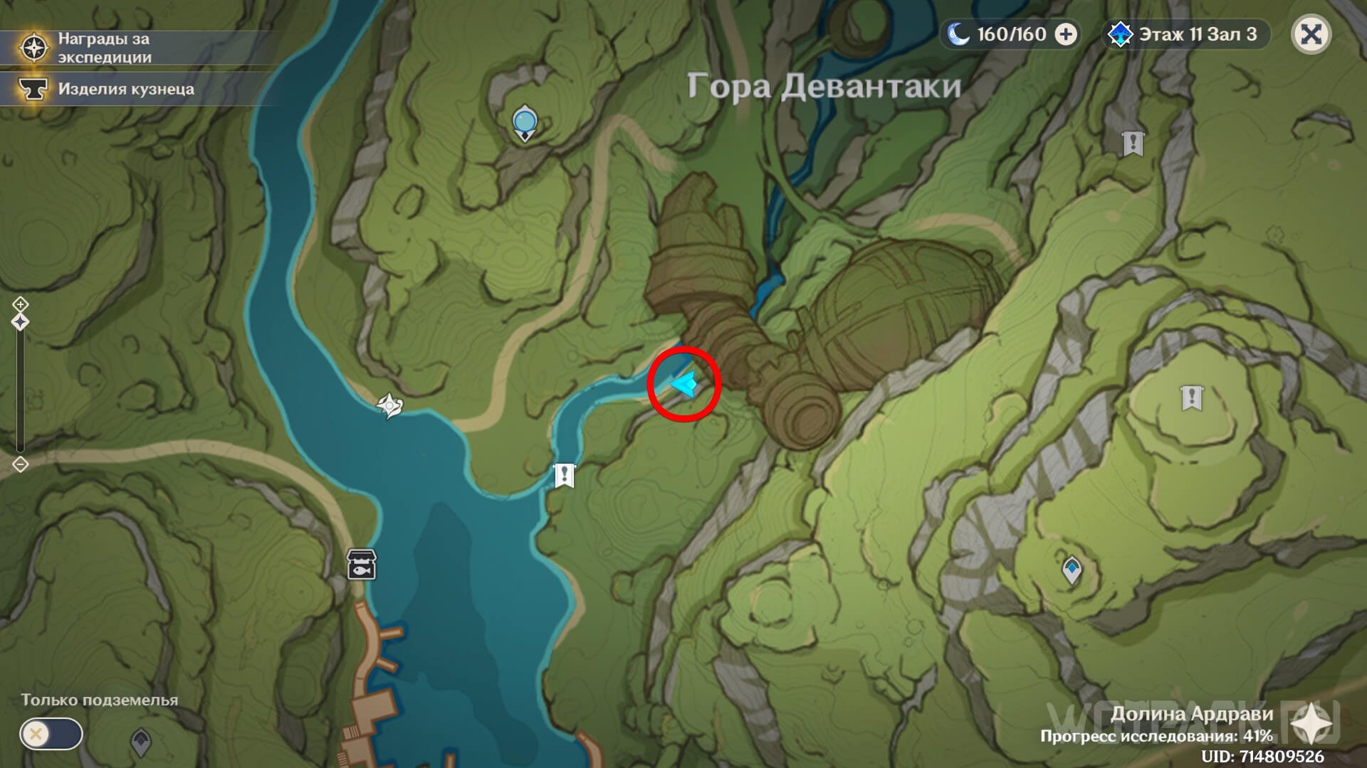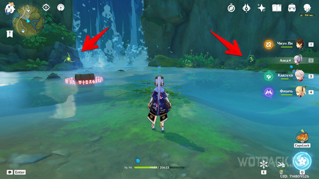 Поднимите корягу любой Дендро атакой, затем исследуйте груду камней, чтобы получить 10000 моры.