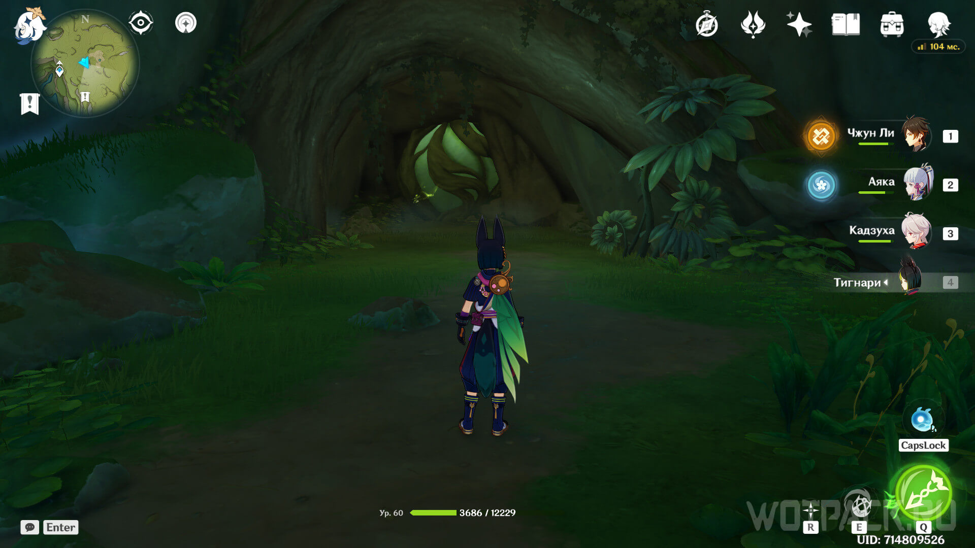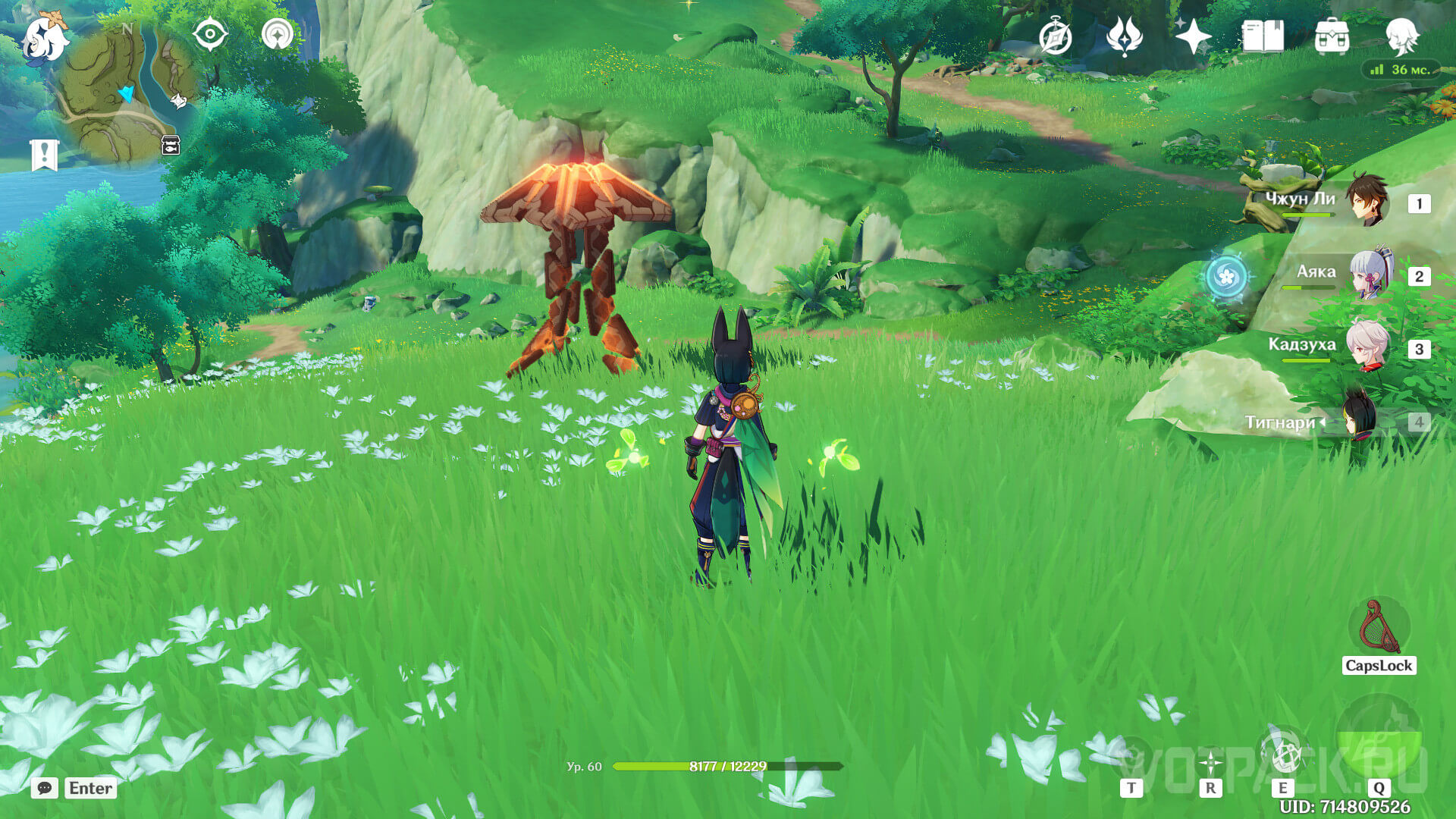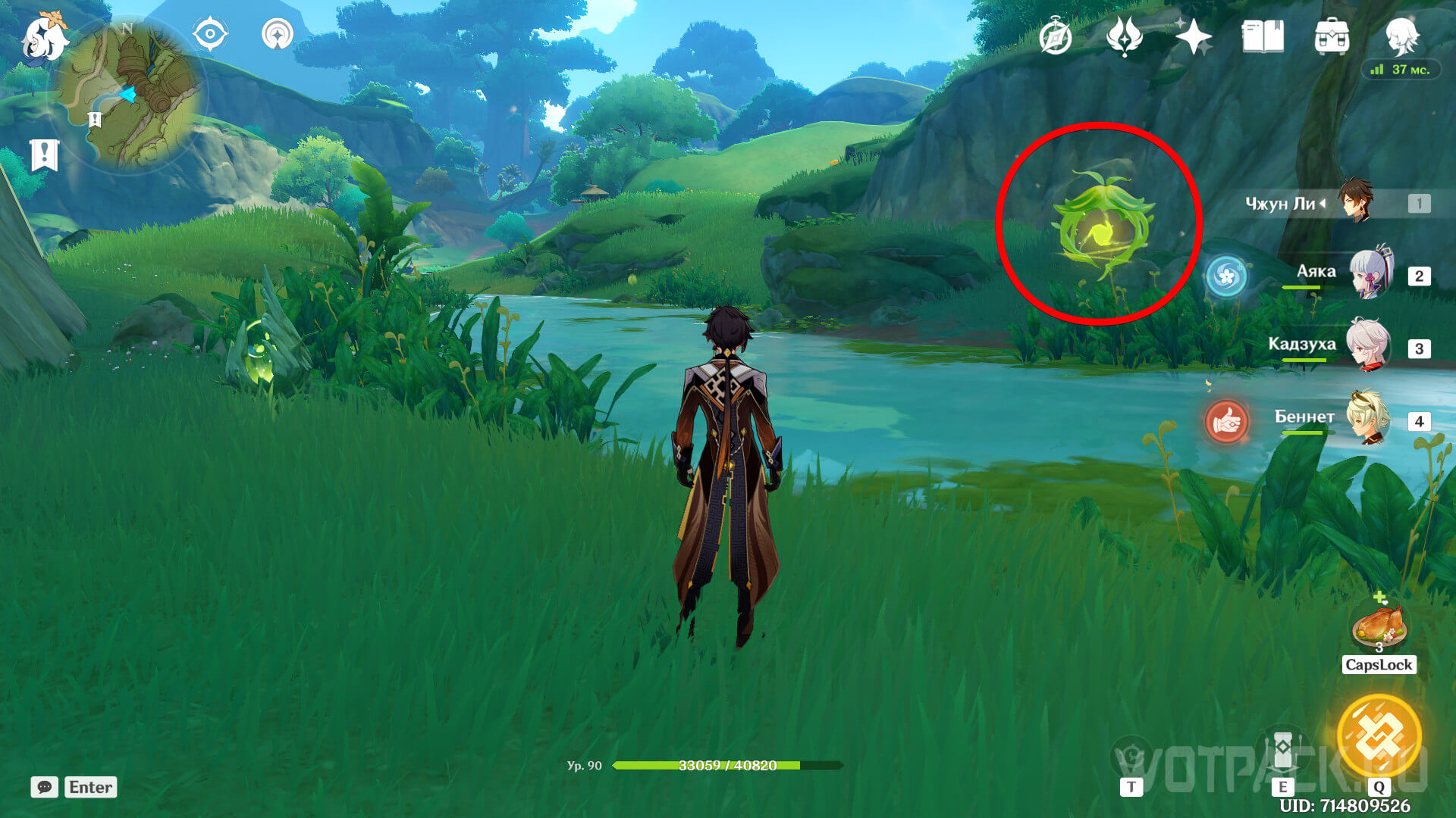Здесь рядом с загадкой сидит лавачурл, но его можно не трогать. Просто разрушьте Дендро камень, запустив в него Дендрогранум с помощью лучника. Затем подбегите и заберите 10000 моры, на всякий случай используя щит.
