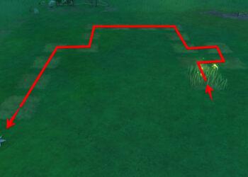 Подойдите к двум маленьким зеленым духам (указаны на втором скриншоте). Следуйте за ними, проходя по «полям», как показано ниже, и соберите цветок. Важно не останавливаться и не наступать на одно и то же место дважды, иначе придется начинать заново. Награда: обычный сундук.