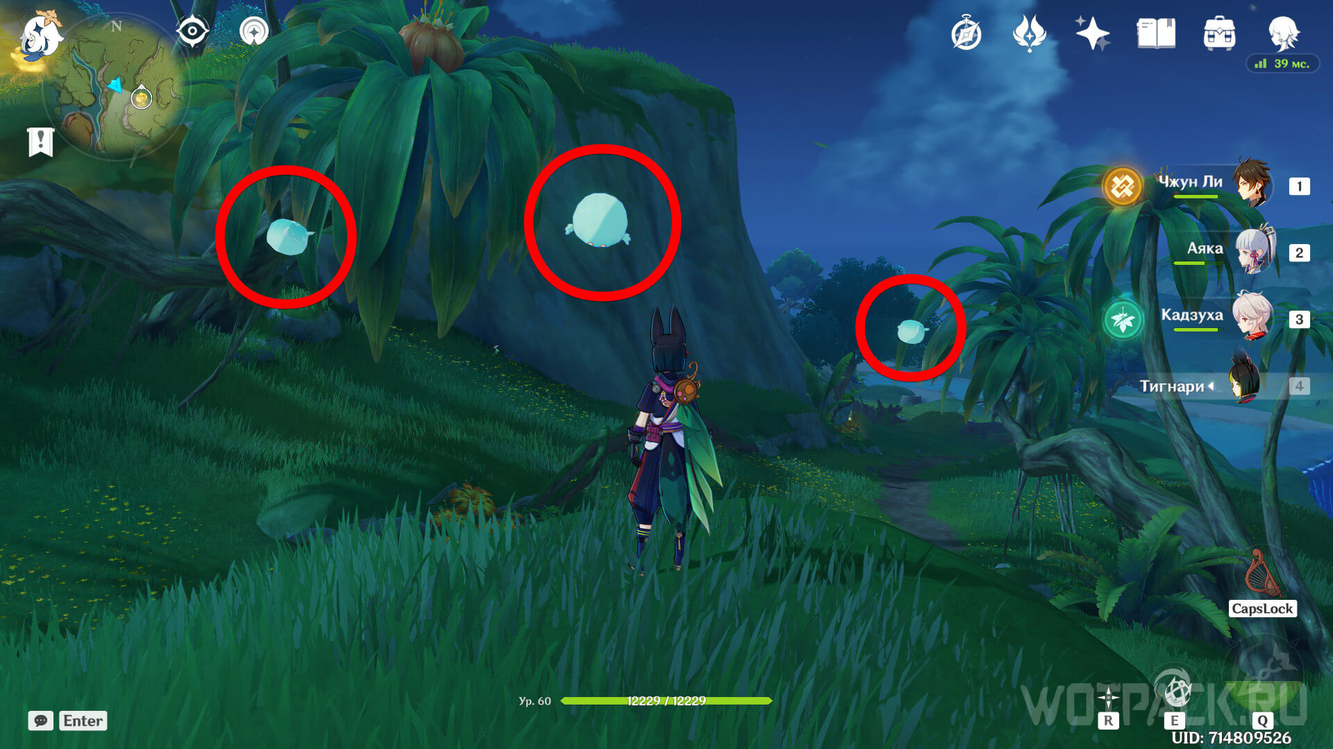В той же пещере есть загадка с рунами на земле и тремя Дендро корягами вокруг них. Чтобы получить награду, нужно зажечь весь рисунок. Для этого, с помощью навыков Дендро персонажей или Дедрогранумов, поднимите все камни. Тогда руны загорятся и появится обычный сундук.