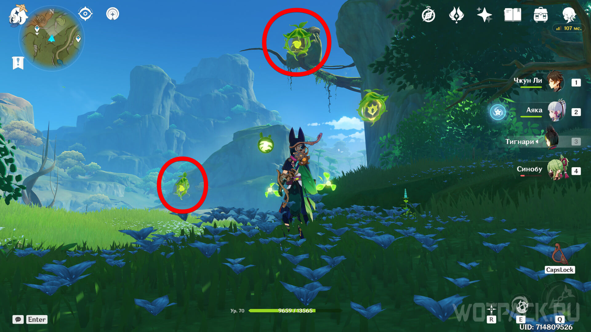 При обнаружении бутонов соцветия используйте Дендро стихию, чтобы растение «выбросило» четырехлистные символы, которые можно будет использовать для более комфортного путешествия по лесам Сумеру.