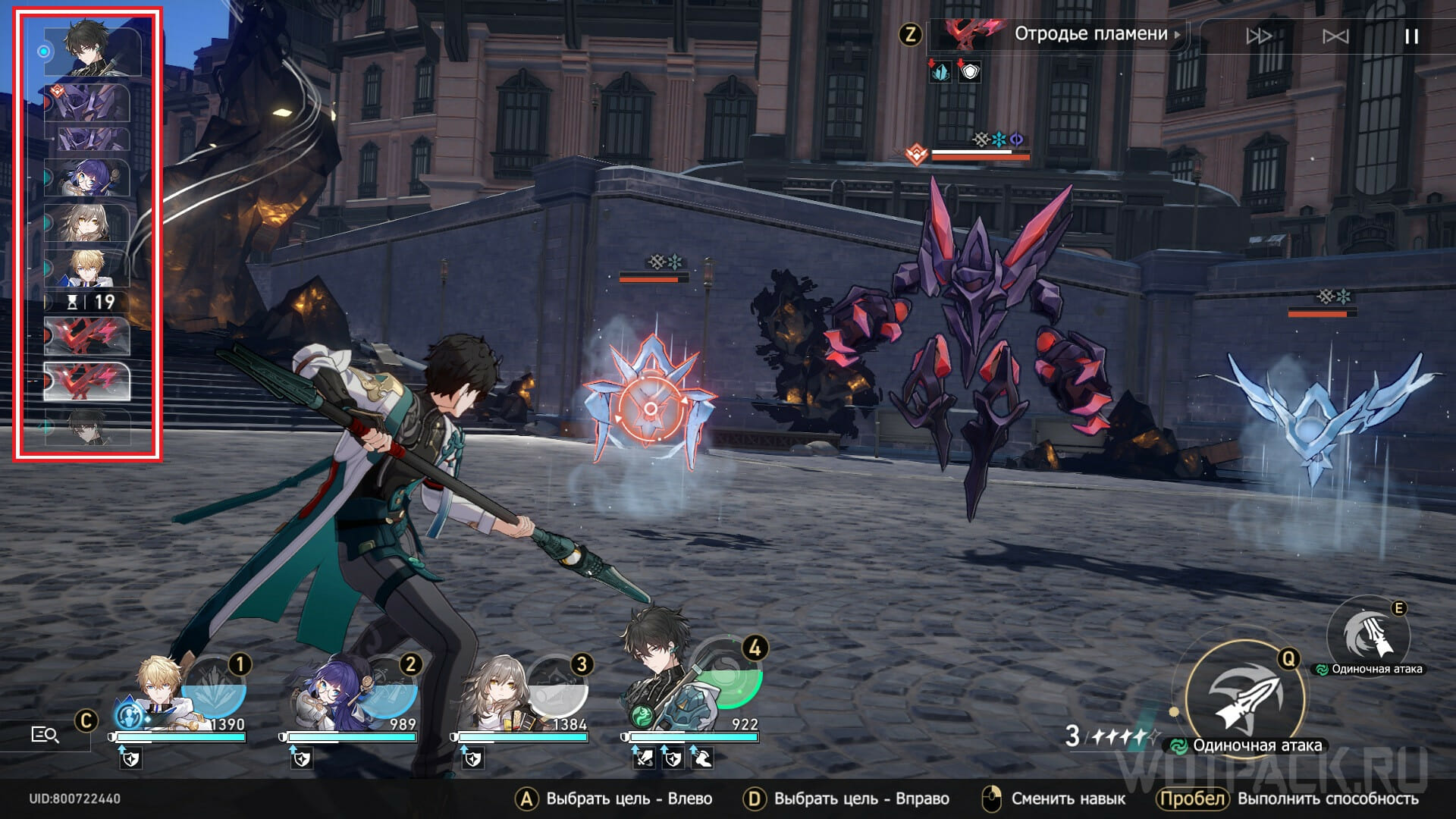 Рассмотрим следующую ситуацию: бой начинается с 20 цикла (считается в обратном порядке), за оставшимся количеством можно следить через левую панель порядка действий.