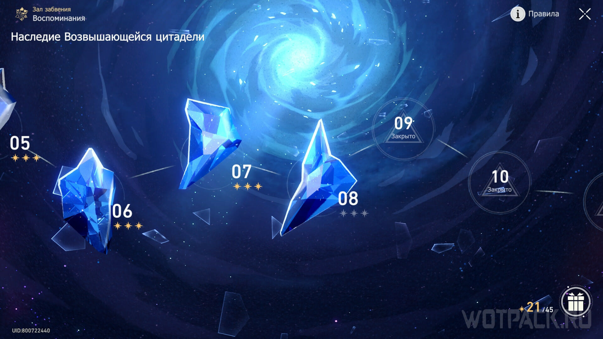 Суммарно, за прохождение «Наследия возвышающейся цитадели» на 45 звезд можно получить 3 000 звездного нефрита и 300 000 кредитов.