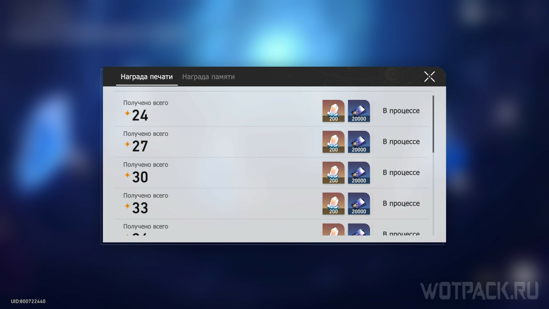Раздел с «Наградами печати» отвечает за получение звездных нефритов и кредитов. Для того чтобы подобраться к заветной валюте, с помощью которой можно купить «прыжки» в магазине Пом-Пом, придется набрать определенное количество звезд во время прохождения первого раздела Зала забвения.