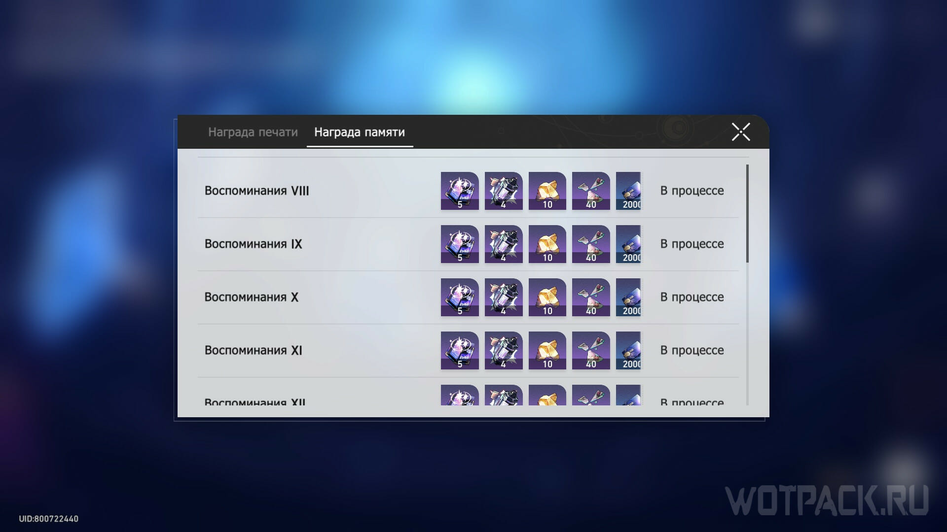Раздел с «Наградами памяти» отвечает за получение различных дополнительных ресурсов и материалов, которые необходимы для прокачки световых конусов, реликвий и уровня персонажей.