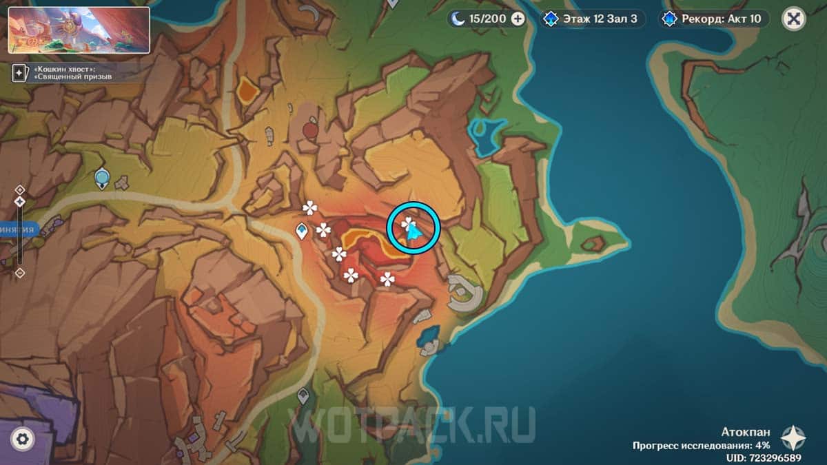 В юго-западном направлении от Атокпана расположен остров, на котором можно нафармить 10 цветков камнелиста.