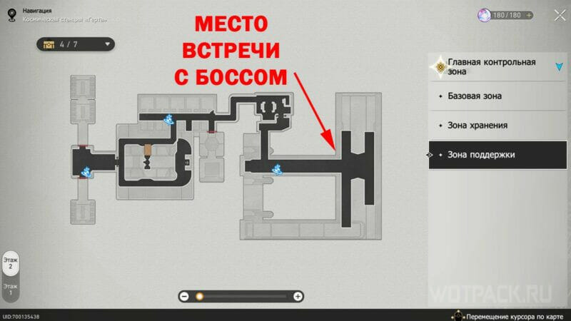 Кат-сцена с боссом запустится, как только достигните арку с третьим номером в локации «Зона поддержки».